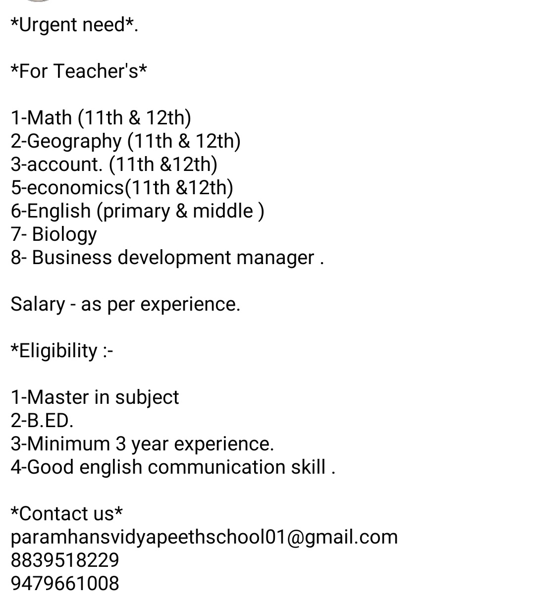Param hans vidyapeeeth scy, Madhya Pradesh 8 posts