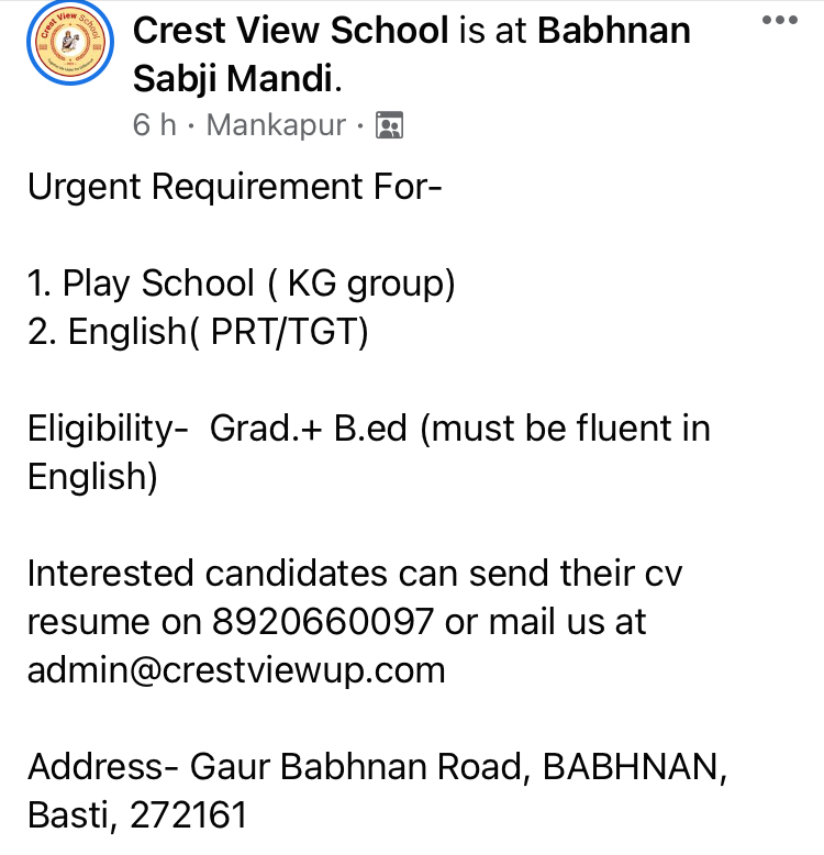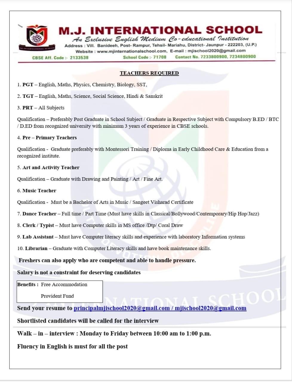 Modern Academy Sr Sec school, Uttar Pradesh 5 posts